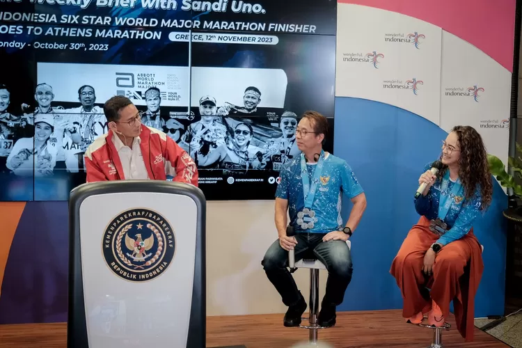 Catatanfakta.com - Menteri Pariwisata dan Ekonomi Kreatif/Kepala Badan Pariwisata dan Ekonomi Kreatif (Menparekraf/Kabaparekraf) Sandiaga Salahuddin Uno mengapresiasi pelari Indonesia yang akan berpartisipasi dalam ajang lomba lari marathon "2023 Athens Marathon" pada 12 November 2023.
