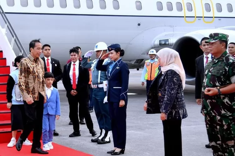 Catatanfakta.com Presiden Joko Widodo (Jokowi) beserta Ibu Negara Iriana dan cucunya, Jan Ethes, tiba di Jawa Timur pada sore hari untuk menghadiri pembukaan Piala Dunia U-17 FIFA 2023.